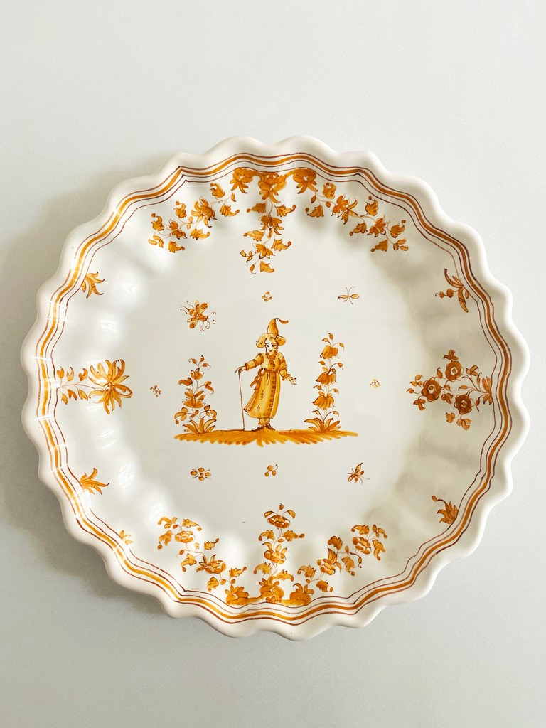 Plat faïence de Moustiers décor grotesque monochrome ocre
